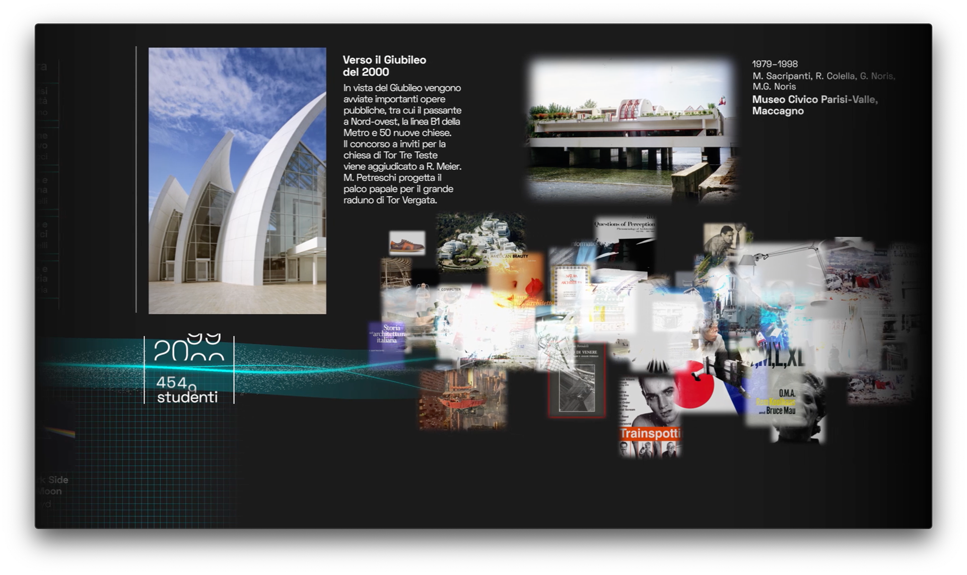 Synced video-installation designed with Studio Azzurro for the exhibit that celebrates centenary ❊ of the foundation of the School of Architecture at the University of Rome La Sapienza.